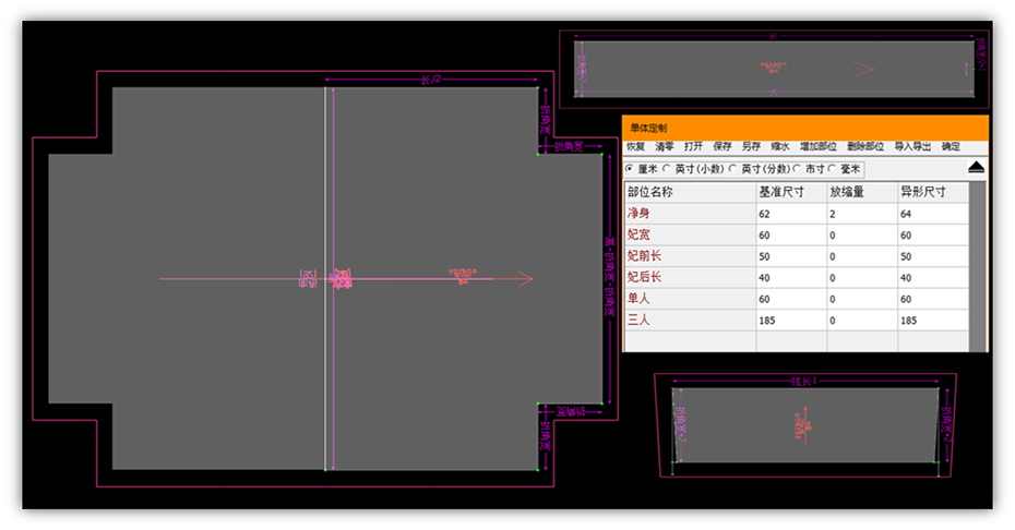 根據(jù)實(shí)際樣片需求,輸入相應(yīng)部位的尺寸,關(guān)聯(lián)樣片瞬間完成異形尺寸
