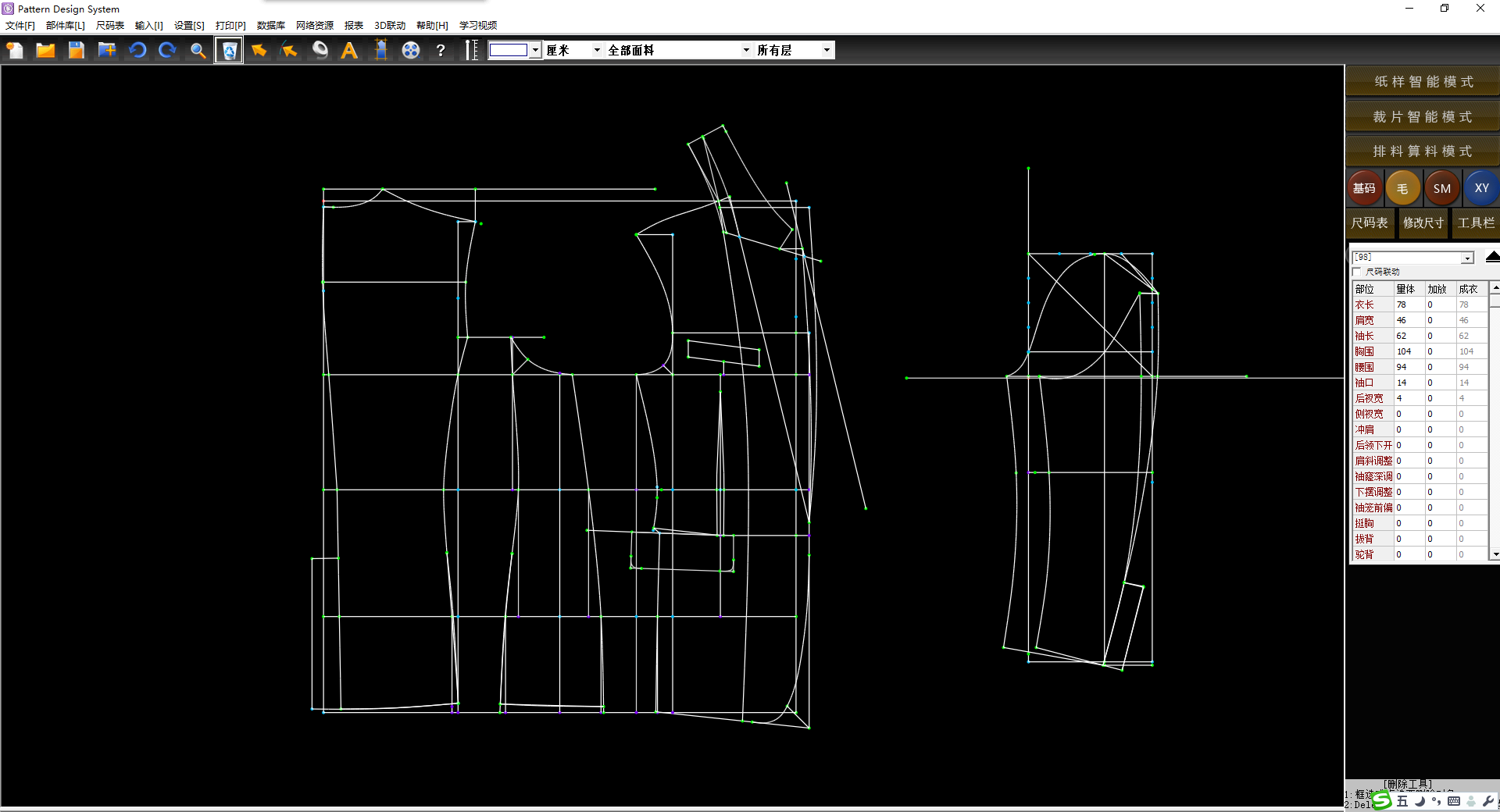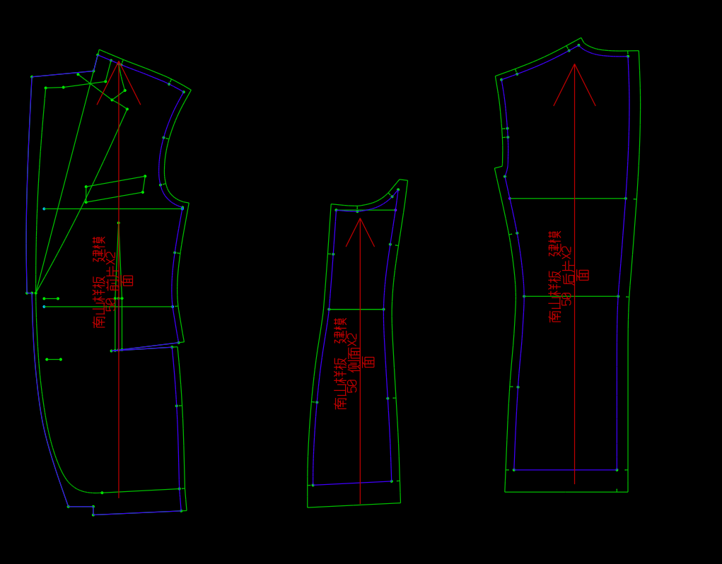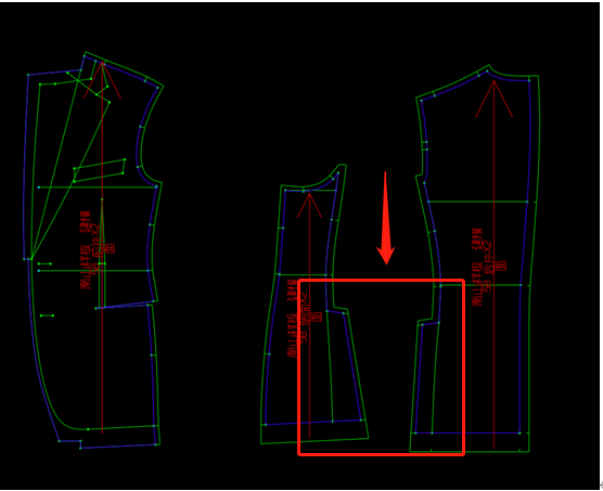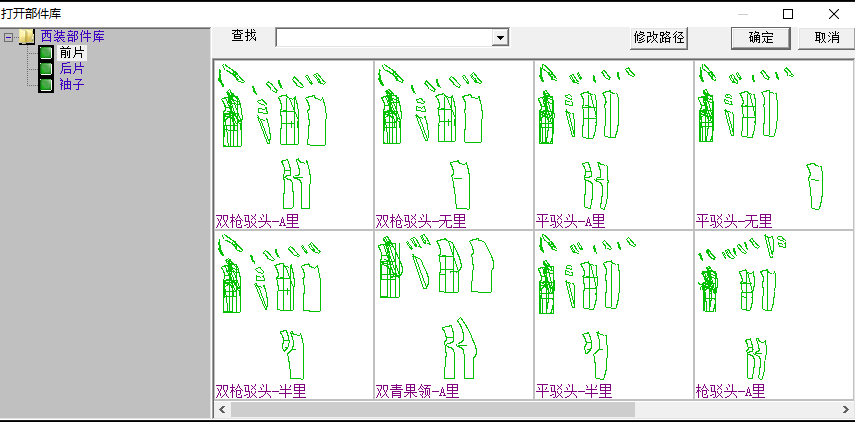 本文以西裝模型為例,展示智能調用的操作方法。西裝樣板可以拆分成前片、后片、袖子組成,每個部分又可以拆分成不同的款式部件。智能調用的具體操作如下:
